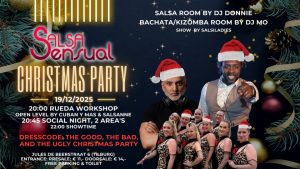 SalsaVibes sluit het dansjaar feestelijk af tijdens de Salsa Vibes Pre-Christmas Party! Kom genieten van een avond vol dans, muziek en gezelligheid. Het perfecte moment om met vrienden de feestdagen in te luiden en samen een swingend einde te maken aan het dansjaar. Mis het niet, het wordt een geweldige avond bij Salsa Vibes!