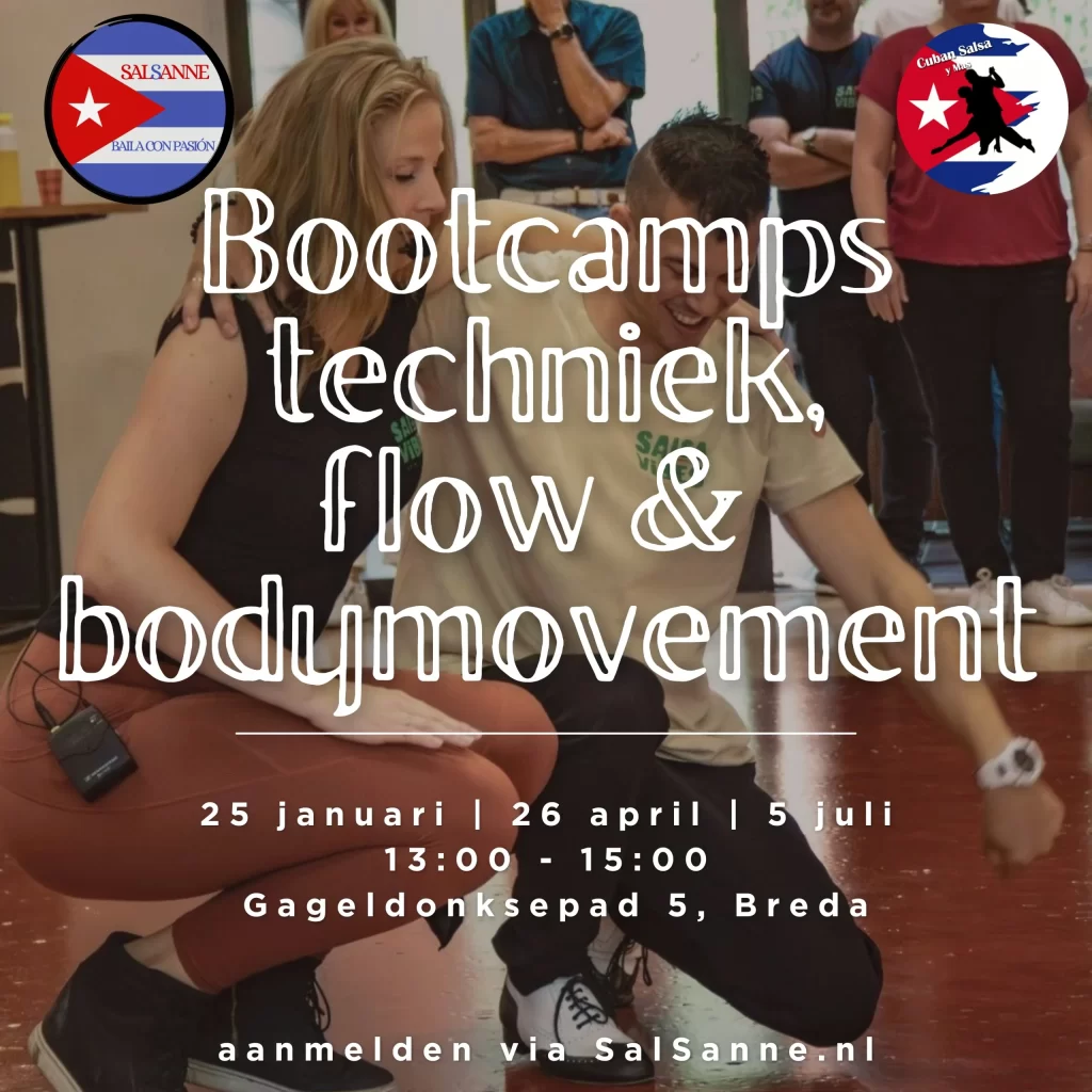 Op zondag 25 januari, 26 april en 5 juli organiseren Cuban Salsa y Mas en SalSanne bootcamps over: Techniek, flow en bodymovement.